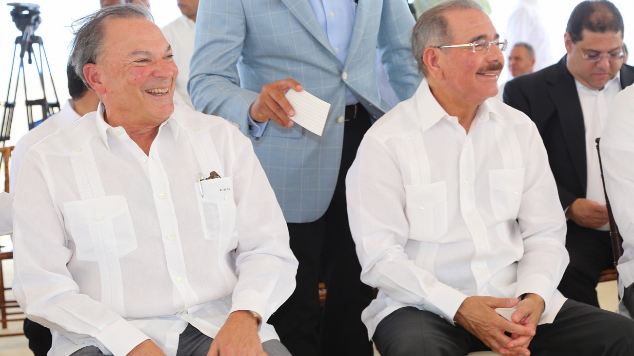 Presidente Danilo Medina y el presidente de Grupo Punta Cana, Frank Rainieri, mientras disfrutan de la recepción por inicio de la obra.
