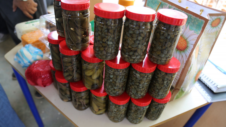 Pepinillos y alcaparras cultivadas en la zona y expuestos durante el encuentro con el presidente Medina.
