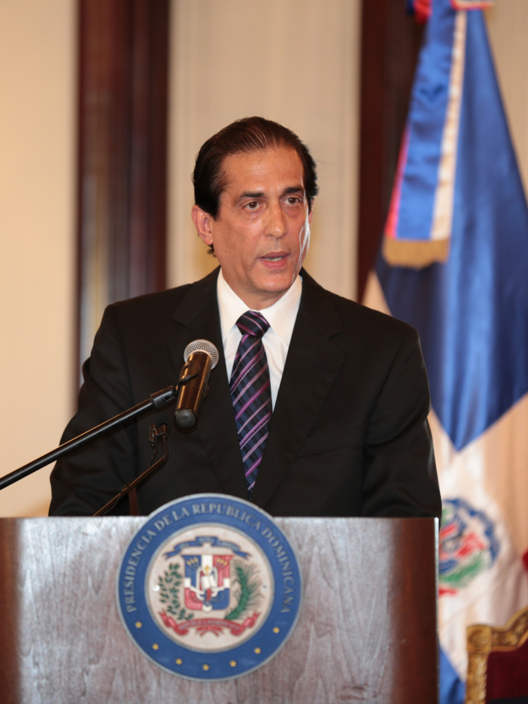 El ministro de la Presidencia, Gustavo Montalvo, se dirige a los presentes en el salón Las Cariátides del Palacio Nacional.