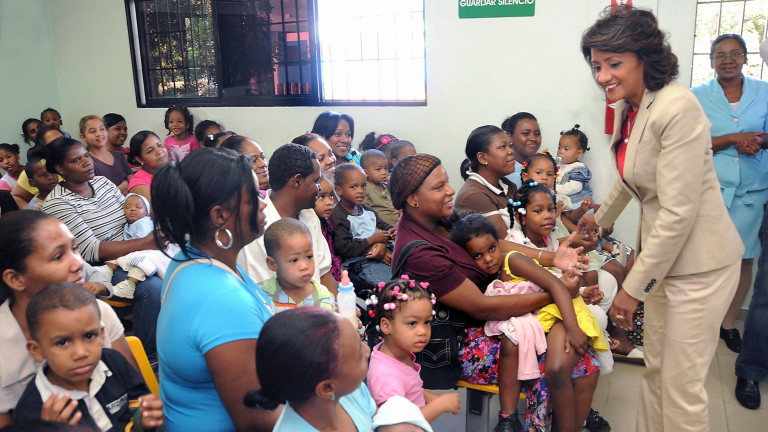 La esposa del presidente de la República, señora Cándida Montilla de Medina, saluda a madres y sus hijos presente en una de las actividades que organiza su despacho..