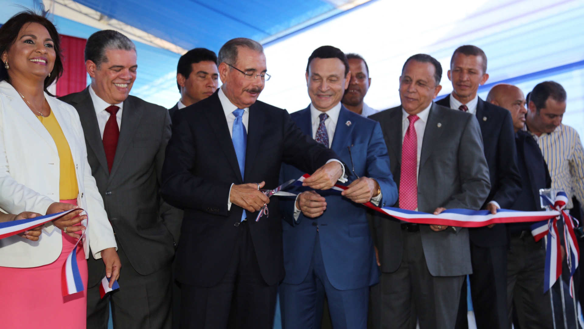 El presidente Danilo Medina corta la cinta durante acto inaugural de la Estancia Infantil Pueblo Nuevo en San Francisco de Macorís, provincia Duarte.