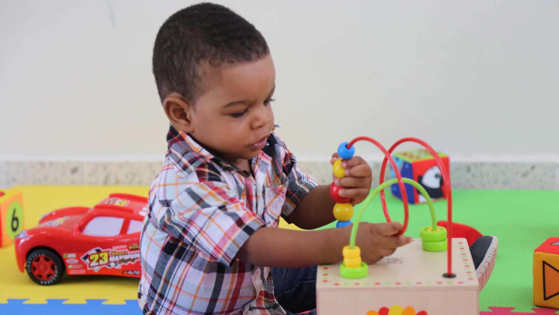 Niños aprenden mientras se divierten en las instalaciones de la nueva Estancia Infantil Pueblo Nuevo inaugurada hoy por el presidente Medina.