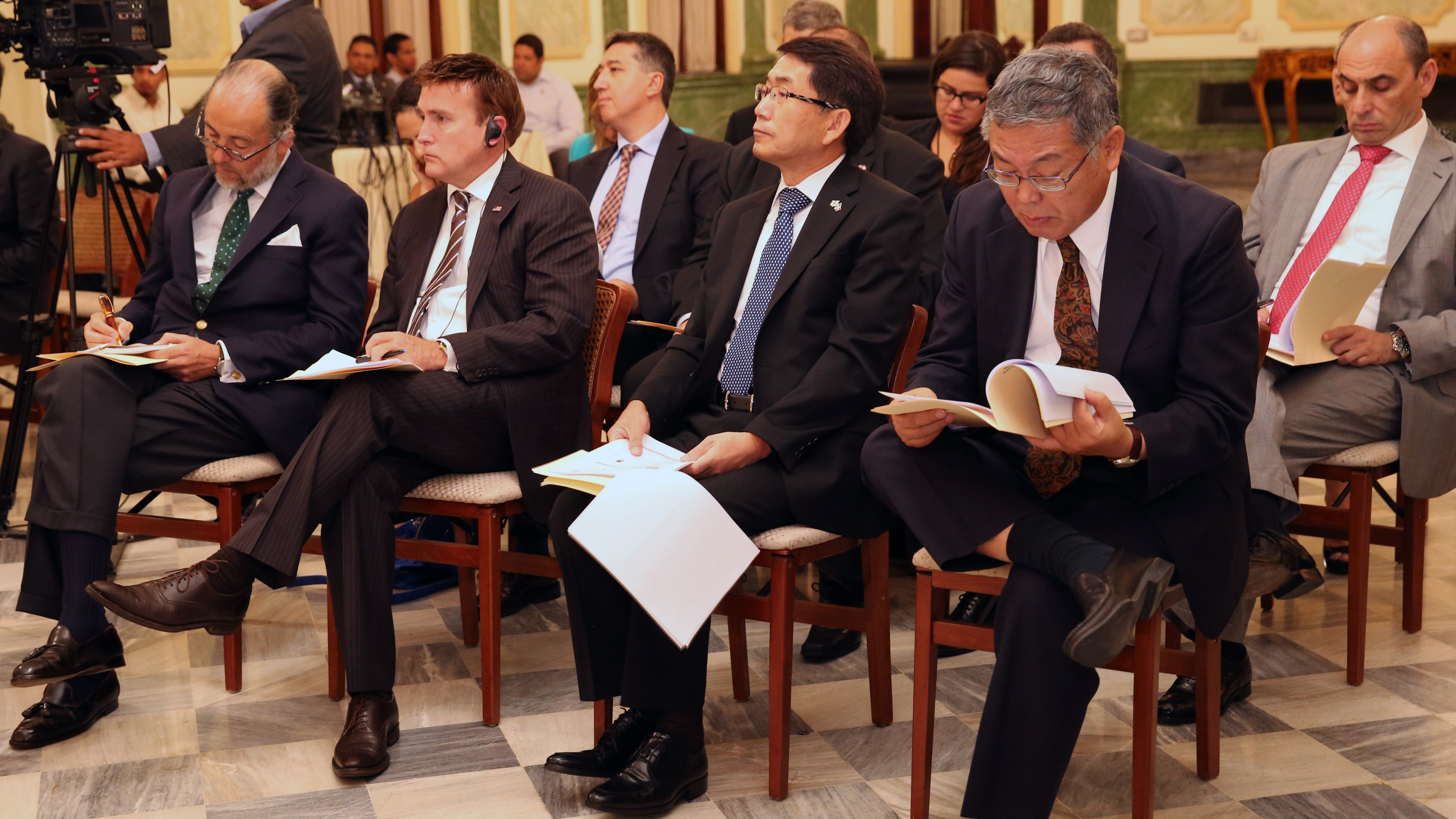 Embajadores acreditados en el país presentes durante reunión donde se explicó el proceso de regularización, los alcances de la Ley 169-14 y la aplicación de la Ley de Migración, en el aspecto de las repatriaciones.