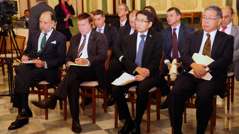 Embajadores acreditados en el país presentes durante reunión donde se explicó el proceso de regularización, los alcances de la Ley 169-14 y la aplicación de la Ley de Migración, en el aspecto de las repatriaciones, efectuada hoy en el Palacio Nacional.