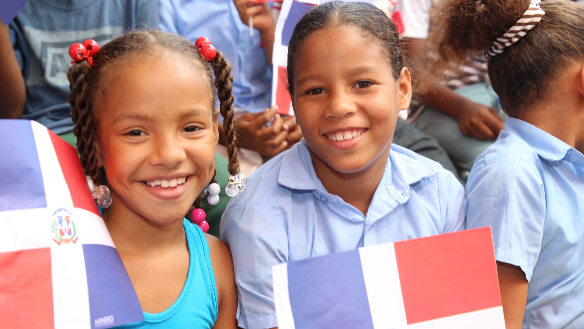 Estudiantes presentes durante acto de inauguración encabezado por el presidente Danilo medina, de la Escuela Básica Pedro Nolasco Núñez, en Canca La Reina, Moca, que integra 43 aulas al Programa de Tanda Extendida.