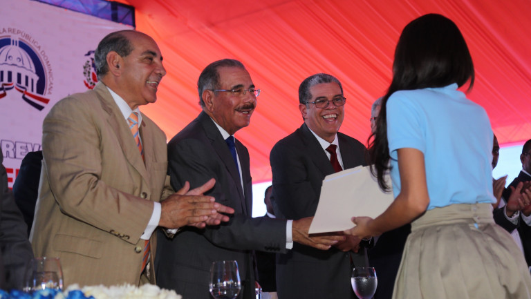 Acto de inauguración encabezado por el presidente Danilo medina, de la Escuela Básica Pedro Nolasco Núñez, en Canca La Reina, la Escuela Básica El Jobo, y el Liceo Hermanos Domínguez López, que integran 43 aulas a Tanda Extendida. Foto: Presidencia República Dominicana Ver detalles en: www.presidencia.gov.do/noticias/espaillat-integra-43-aula...