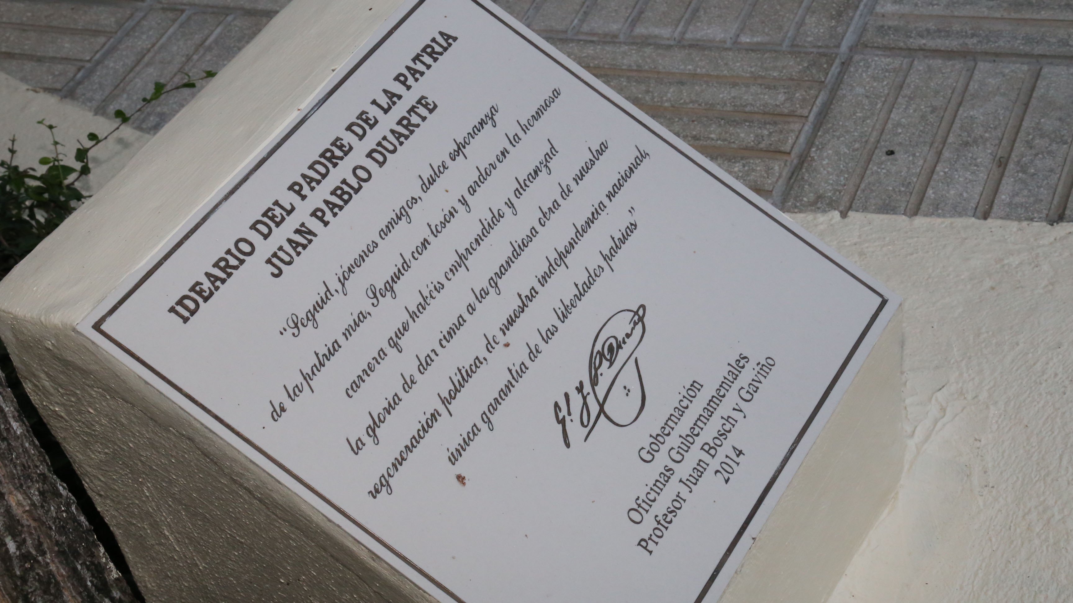 Tarja conmemorativa con ideario del Padre de la Patria, Juan Pablo Duarte.