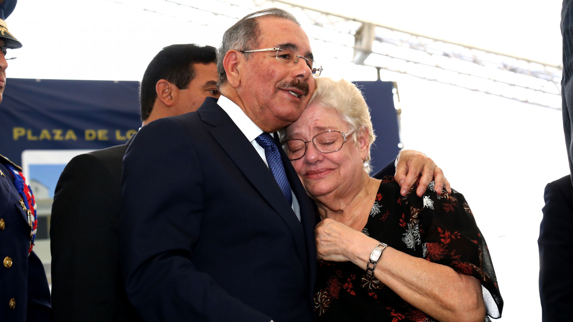 El presidente Danilo Medina acompañado de la hija mayor de don Juan, la señora Carolina Bosch García, quien estuvo presente junto a sus familiares durante el emotivo acto,