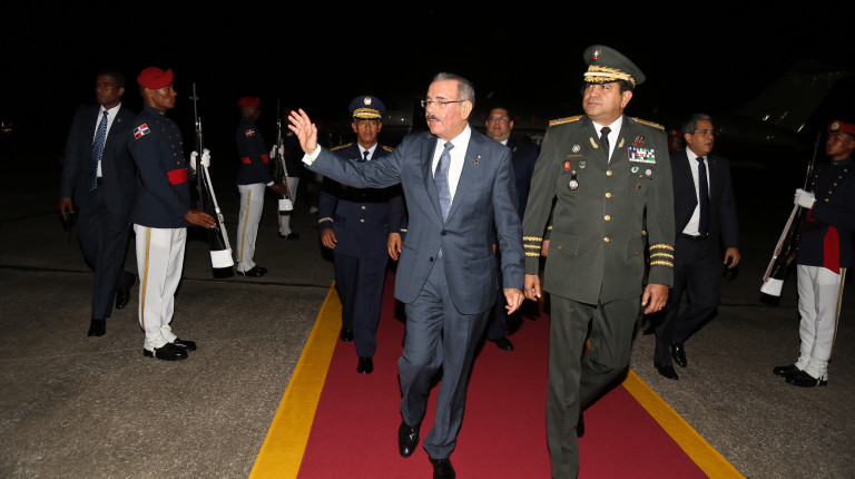 El retorno del jefe de Estado a suelo dominicano se produjo a las 8:33 de la noche por la Base Aérea de San Isidro.