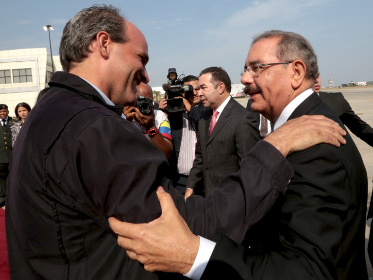 El presidente Danilo Medina es recibido a su llegada al Aeropuerto Internacional de Maiquetía, en Caracas,para participar en los actos de juramentación del mandatario de la República Bolivariana de Venezuela, Nicolás Maduro. Foto: Presidencia República Dominicana Nota de prensa; presidencia.gob.do/comunicados/presidente-medina-sali%C3%...
