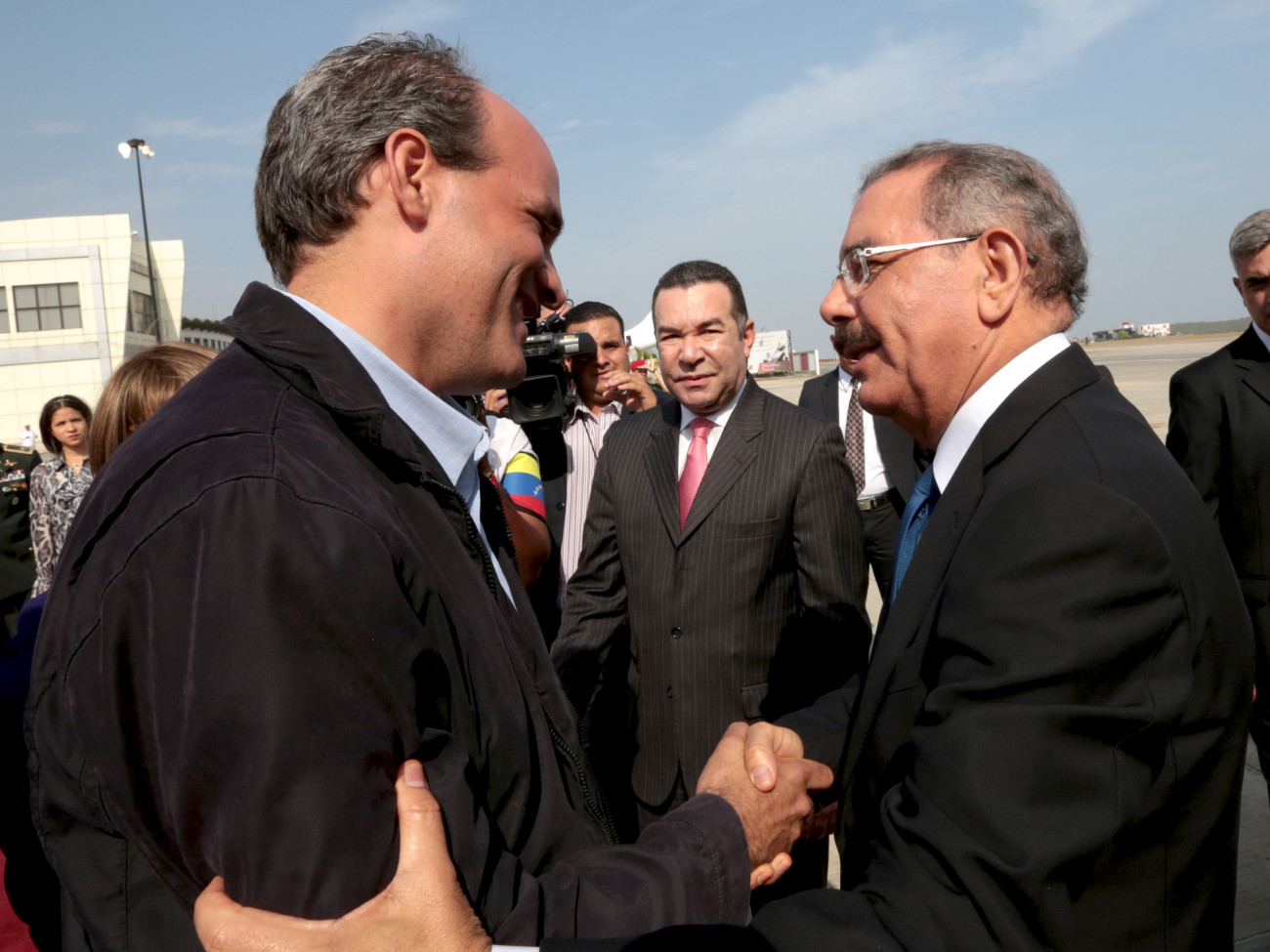 El presidente Danilo Medina es recibido a su llegada al Aeropuerto Internacional de Maiquetía, en Caracas,para participar en los actos de juramentación del mandatario de la República Bolivariana de Venezuela, Nicolás Maduro.