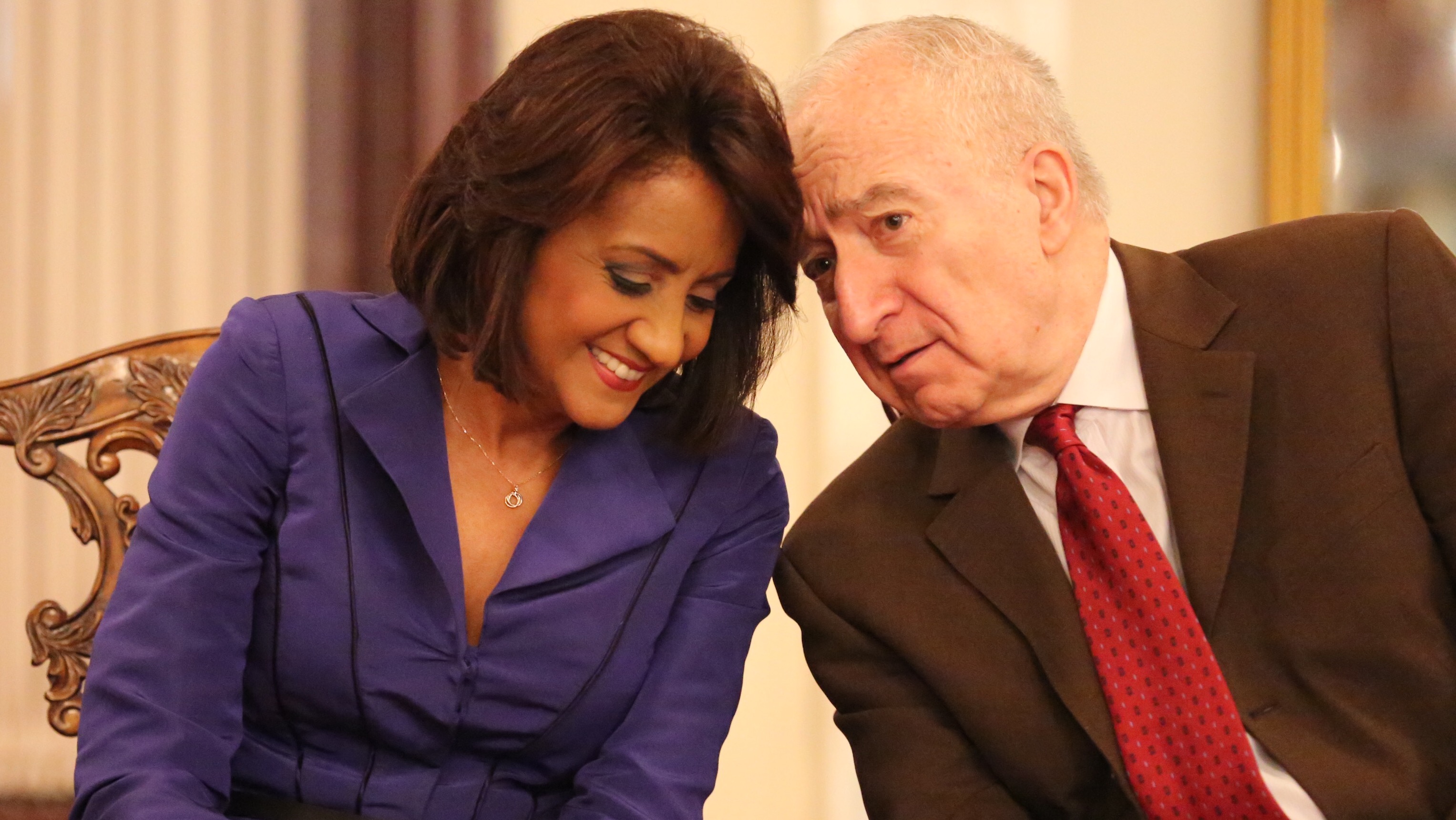 La esposa del Presidente de la República, Cándida Montilla de Medina, mientras conversa con el catedrático Bernardo Kliksberg.