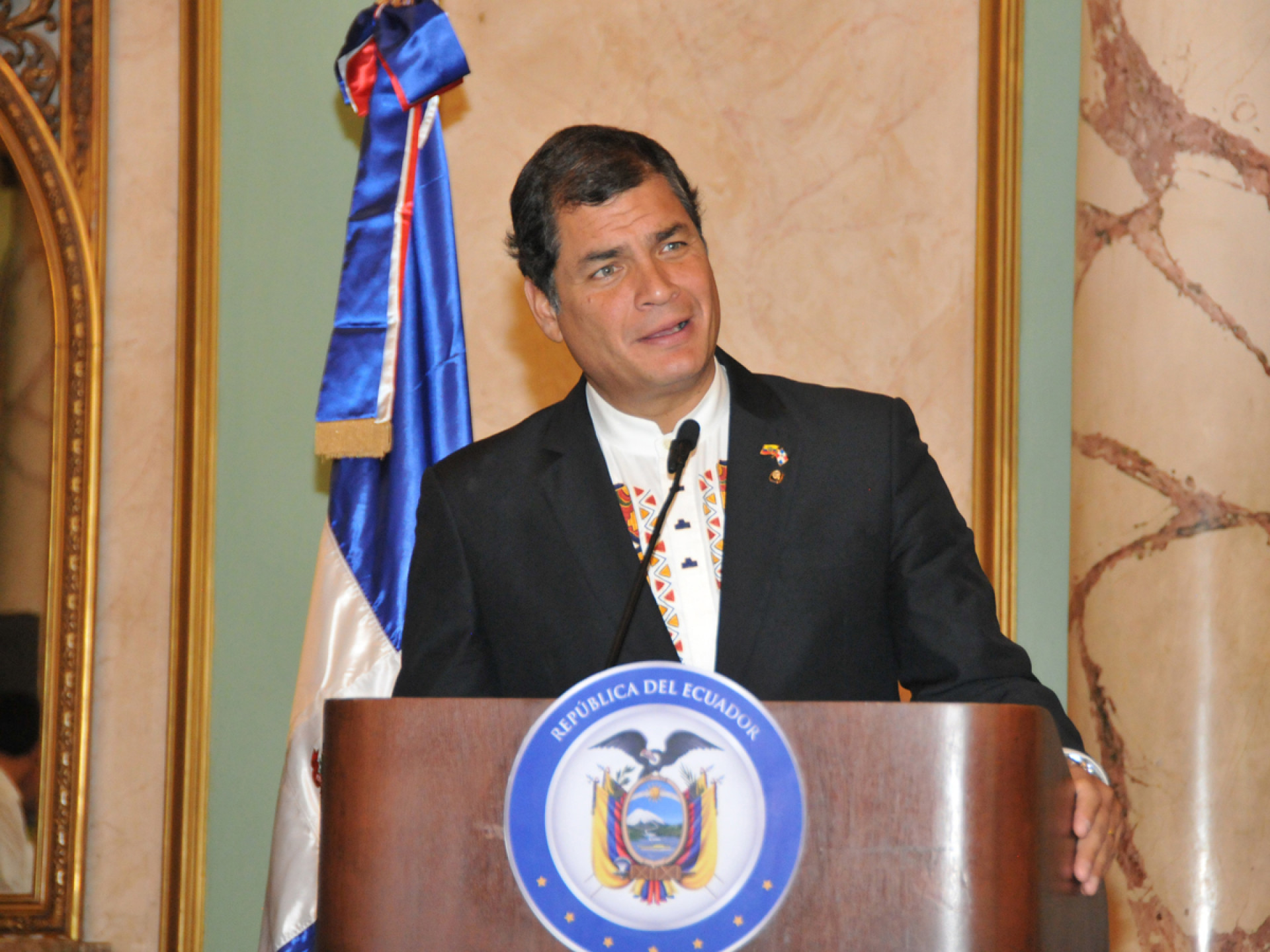 El presidente de la República del Ecuador, Rafael Correa, durante la declaración conjunta en el salón de Embajadores del Palacio Nacional, frente a las delegaciones de su país y República Dominicana.