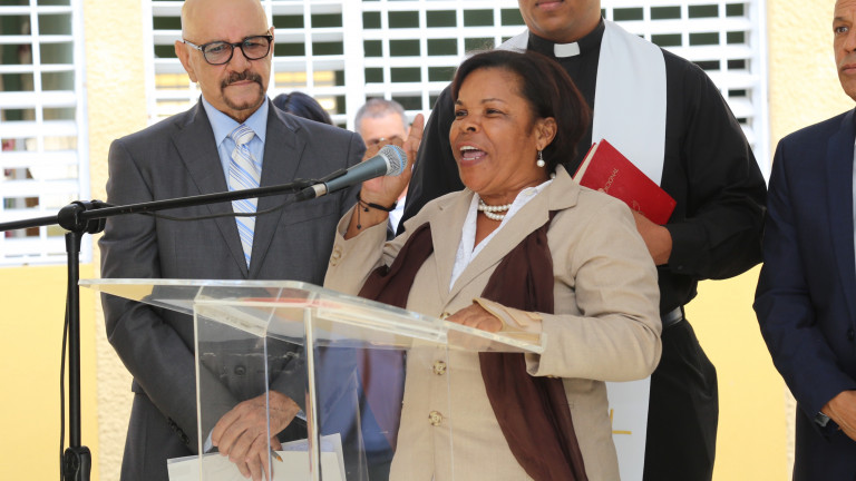 Elizabeth Adames, directora de la escuela básica La Mata, dio las gracias al presidente Danilo Medina, en nombre del cuerpo educativo por los nuevos planteles recibidos.