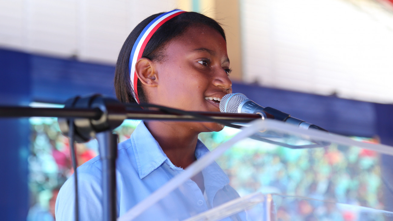 La estudiante Luisa Josefina Vásquez, de octavo grado de básica, dijo que la comunidad de La Gina y El Higüero están de júbilo, porque el presidente Danilo Medina hizo realidad el sueño de tener una escuela de Tanda Extendida.