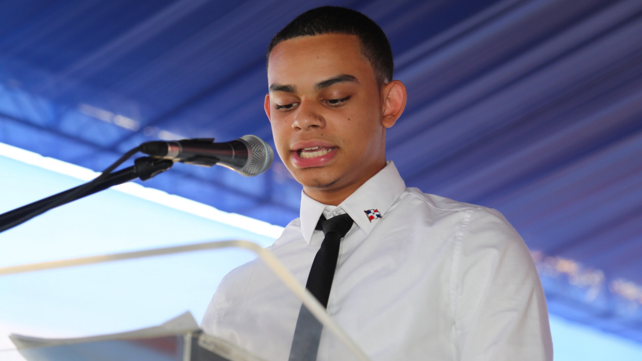 Adriano Polanco habló en representación de sus compañeros estudiantes dominicanos meritorios recibidos la mañana de hoy por el presidente Danilo Medina. Los jóvenes estudiantes fueron reconocidos por el consulado dominicano en Nueva York por su sobresaliente desempeño en el sistema educativo de ese país.