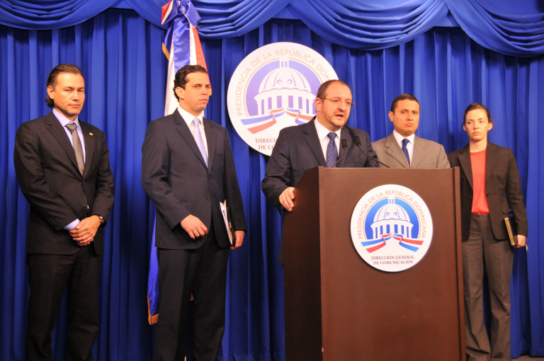 El ministro de Relaciones Exteriores de la República de Guatemala, Luis Fernando Carrera, habla junto a su comitiva, en el salón Orlando Martínez del Palacio Nacional, ante los periodistas, después de reunirse con el presidente Danilo Medina, en el despacho del mandatario dominicano. Foto: presidencia República Dominicana Nota de prensa: presidencia.gob.do/noticias/presidente-medina-recibe-en-s...