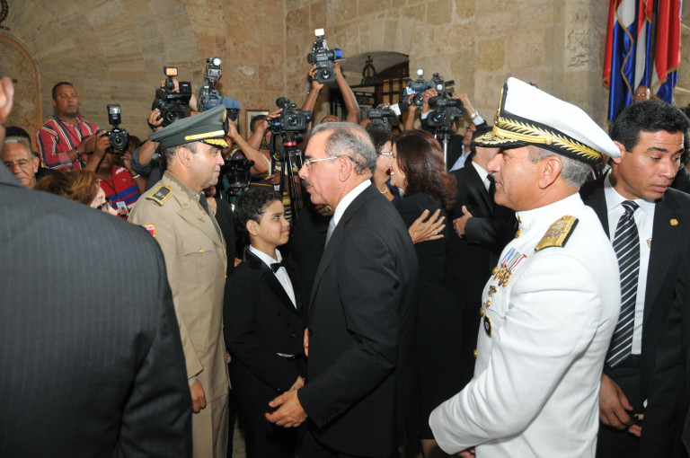 Danilo Medina, presidente de la República, comparte con los invitados en el acto de exaltación del coronel Francisco Alberto Caamaño Deñó al Panteón Nacional.