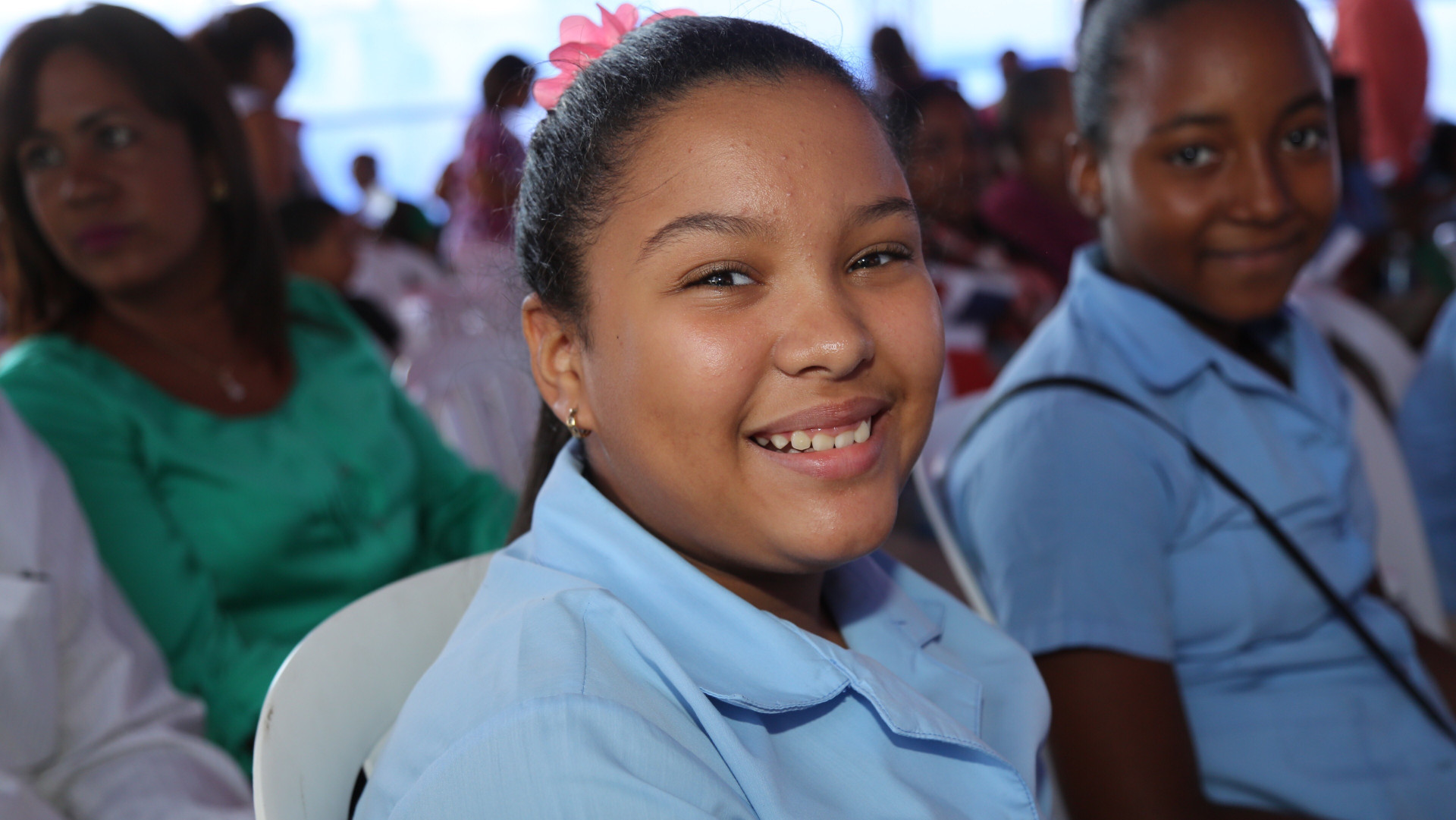 Estudiantes muestran en sus rostros la alegría que sienten al poder tener nuevas escuelas con lo necesario para recibir una educación de calidad.