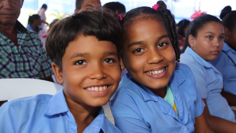 Estudiantes muestran en sus rostros la alegría que sienten al poder tener nuevas escuelas con lo necesario para recibir una educación de calidad.
