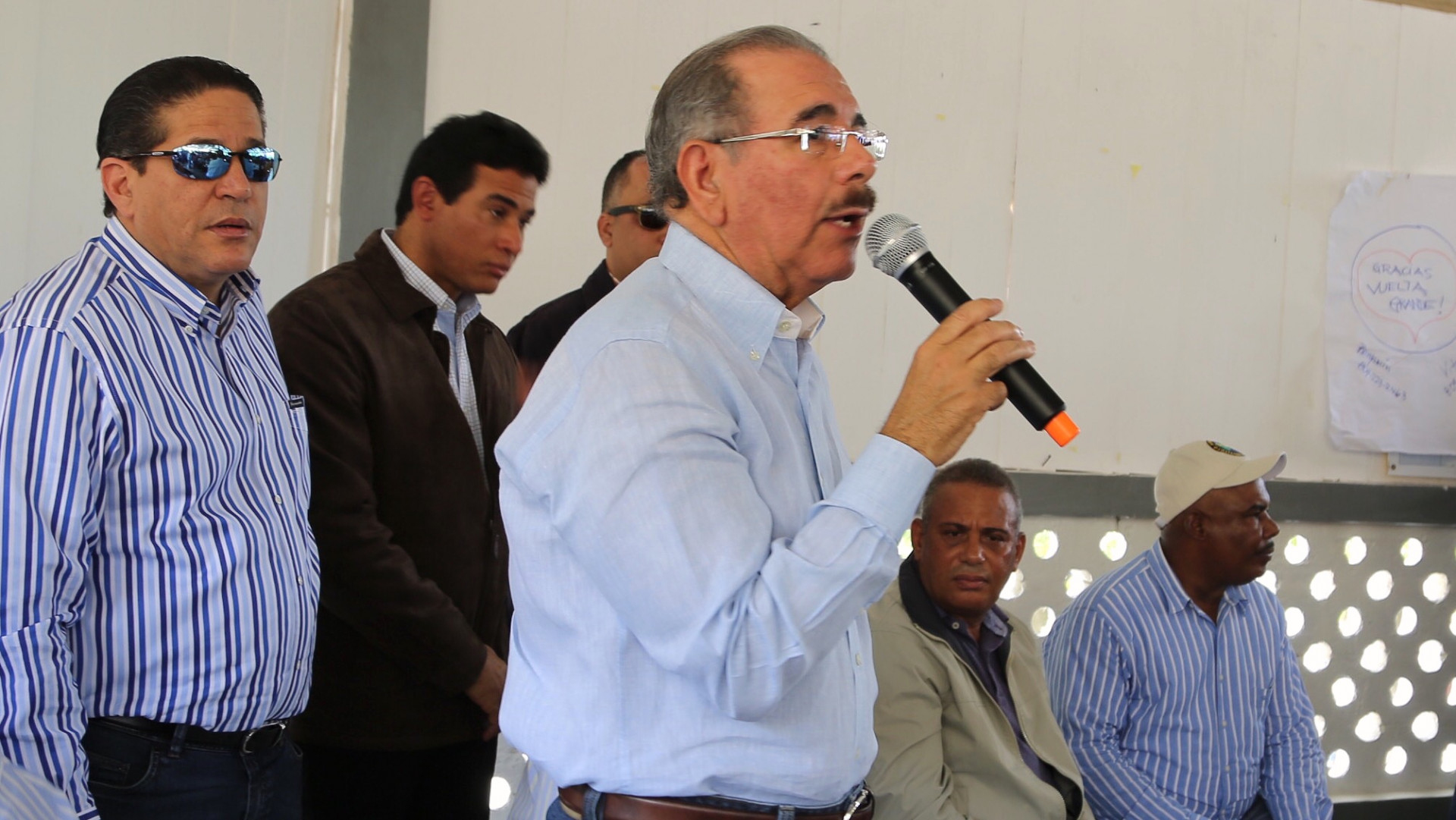 Presidente Danilo Medina mientras dirige la palabra a productores de la provincia Bahoruco, a quienes autorizó créditos para proyectos solicitados en favor de la producción local.
