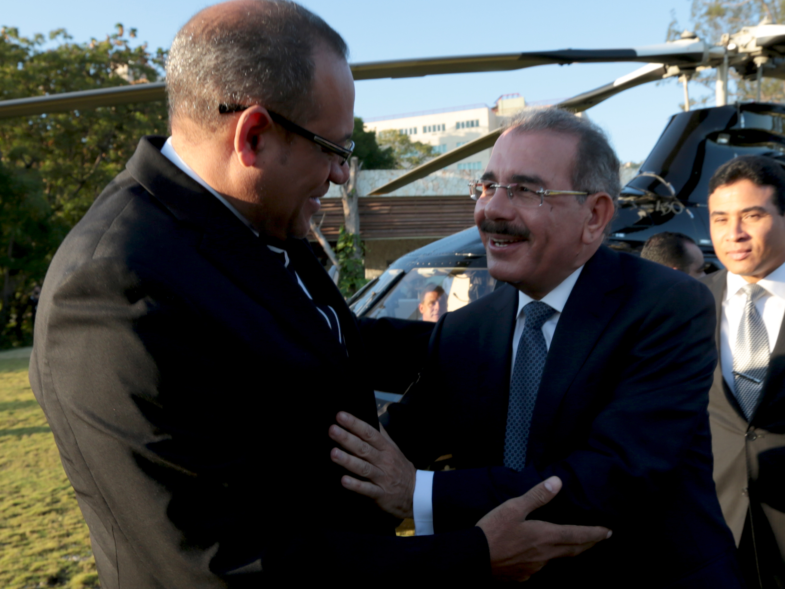 Danilo Medina, presidente de la República, es recibido en Haití por Ramón de la Rosa, cónsul dominicano. El jefe de Estado arriba a Puerto Príncipe, capital haitiana para participar en la V Cumbre de Jefes de Estado y de Gobierno de la Asociación de Estados del Caribe AEC.