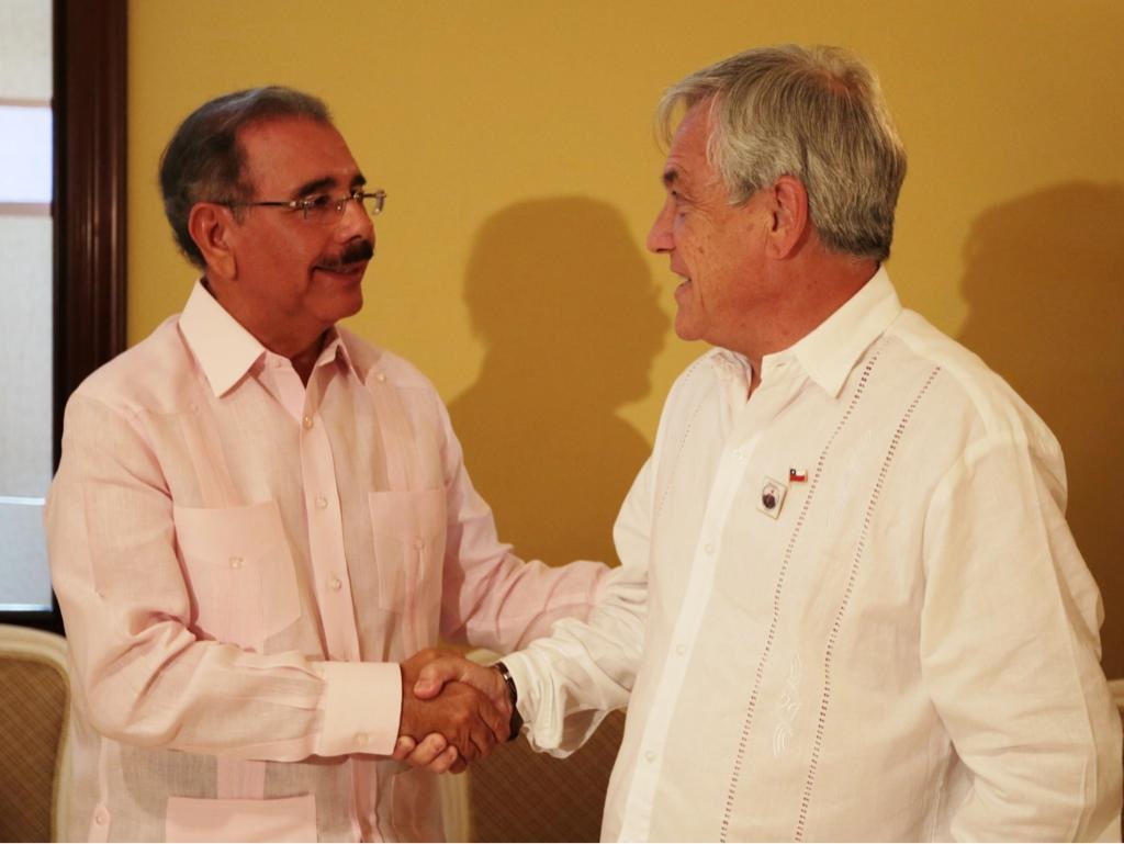 El presidente de la República, Danilo Medina, (izquierda) y el presidente de Chile, Sebastián Piñera, se saludan en el marco de la V Cumbre de Jefes de Estado y de Gobierno de la Asociación de Estados del Caribe (AEC), en Puerto Príncipe, Haití.