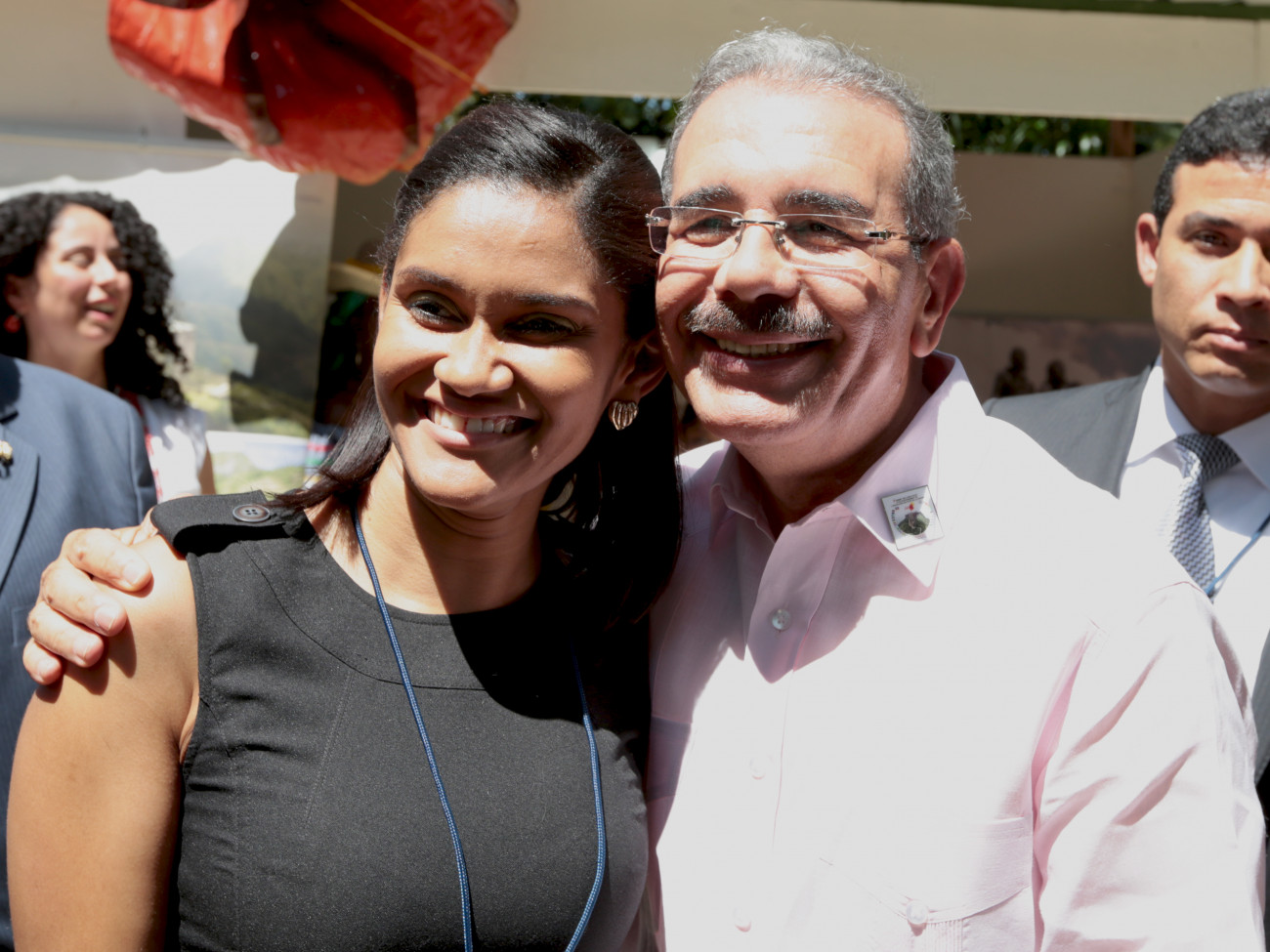 El presidente de la República, Danilo Medina, atiende la solicitud de esta joven, para tomarse una fotografía junto a ella, en el marco de la V Cumbre de Jefes de Estado y de Gobierno de la Asociación de Estados del Caribe (AEC) que se celebra en Puerto Príncipe, Haití.