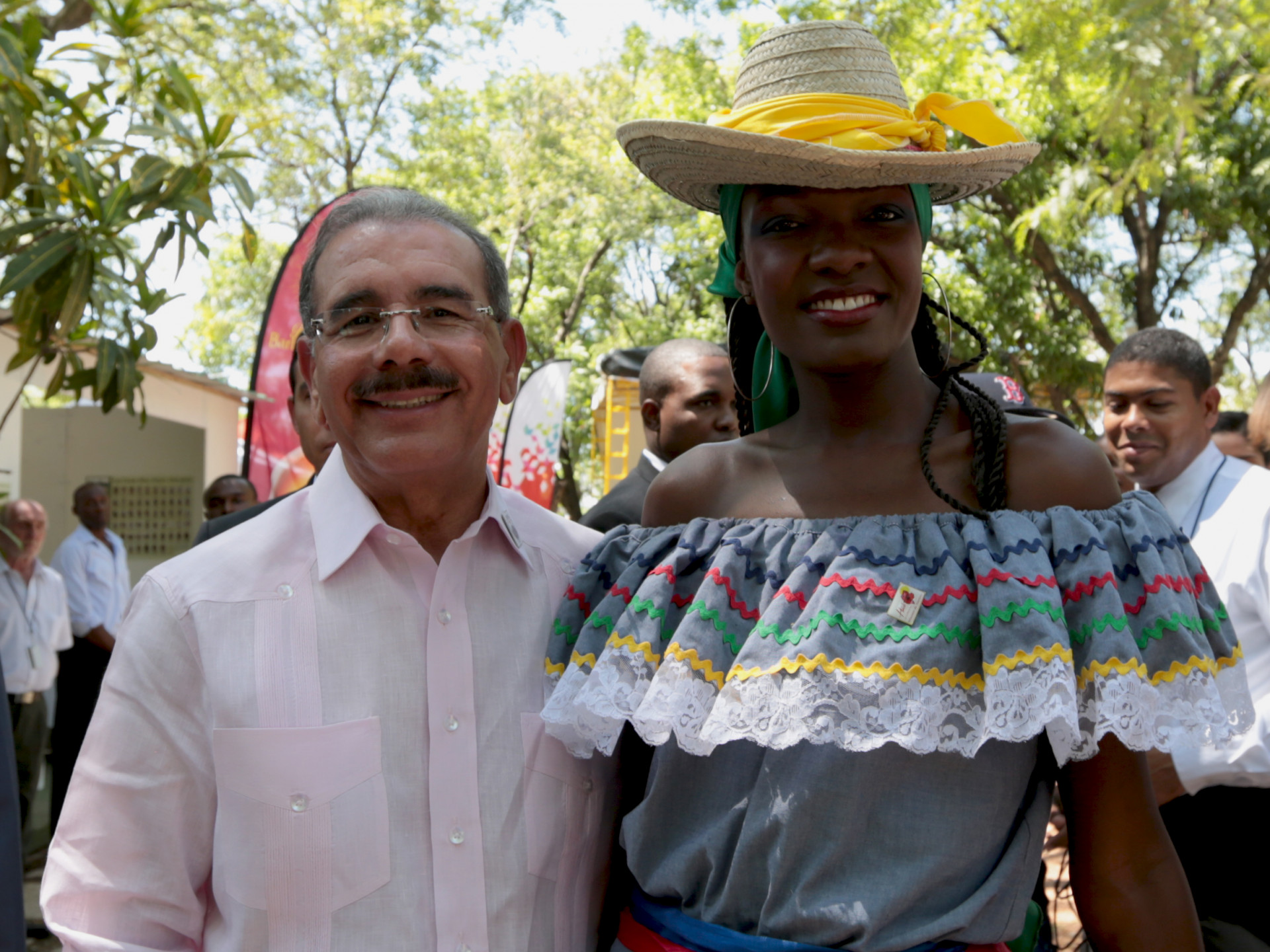 El presidente de la República, Danilo Medina, atiende la solicitud de esta joven folclorista de fotografiarse con él, durante la V Cumbre de Jefes de Estado y de Gobierno de la Asociación de Estados del Caribe (AEC) que se celebra en Puerto Príncipe, Haití.