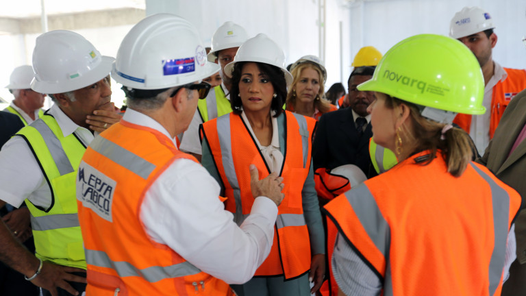 La esposa del Presidente de la República, señora Cándida Montilla de Medina, recibió explicaciones por parte de los arquitectos e ingenieros sobre la marcha de los trabajos del CAID, en Santiago, que será inaugurado próximamente.