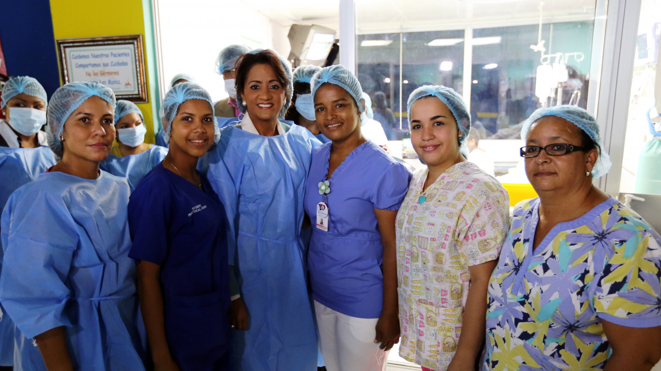 La señora Montilla de Medina visitó el Hospital Infantil Dr. Arturo Grullón, en Santiago, donde hizo un recorrido por el Área de Quemados y compartió con médicos, enfermeras, personal de administración y familiares de los pequeños pacientes.