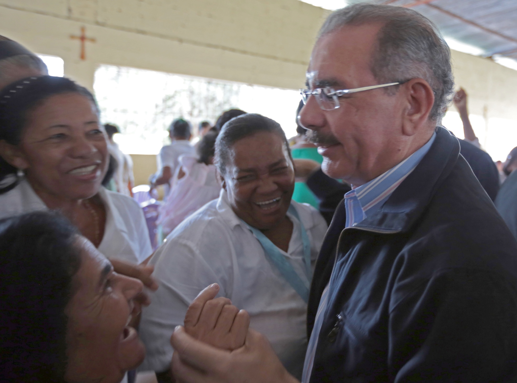 El presidente Danilo Medina recibe saludos de integrantes de la Asociación para el Desarrollo de Mujeres Emprendedoras de El Puerto, San Pedro de Macorís, la visita sorpresa del jefe de Estado.