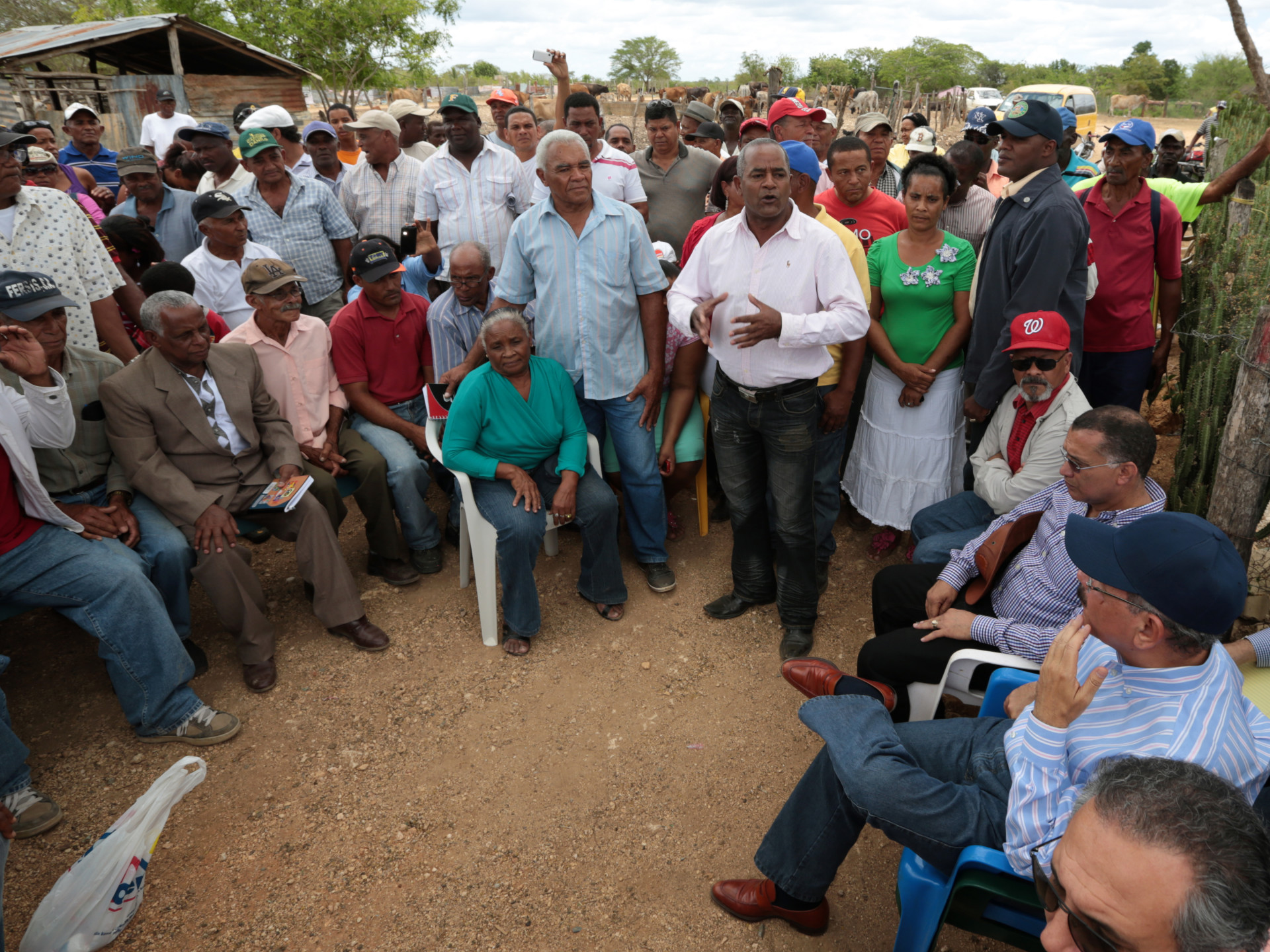 El presidente de la República, Danilo Medina, escucha a los miembros de tres asociaciones de productores agropecuarios de Los Llanos, provincia San Pedro de Macorís, donde hace una visita sorpresa a esa población.