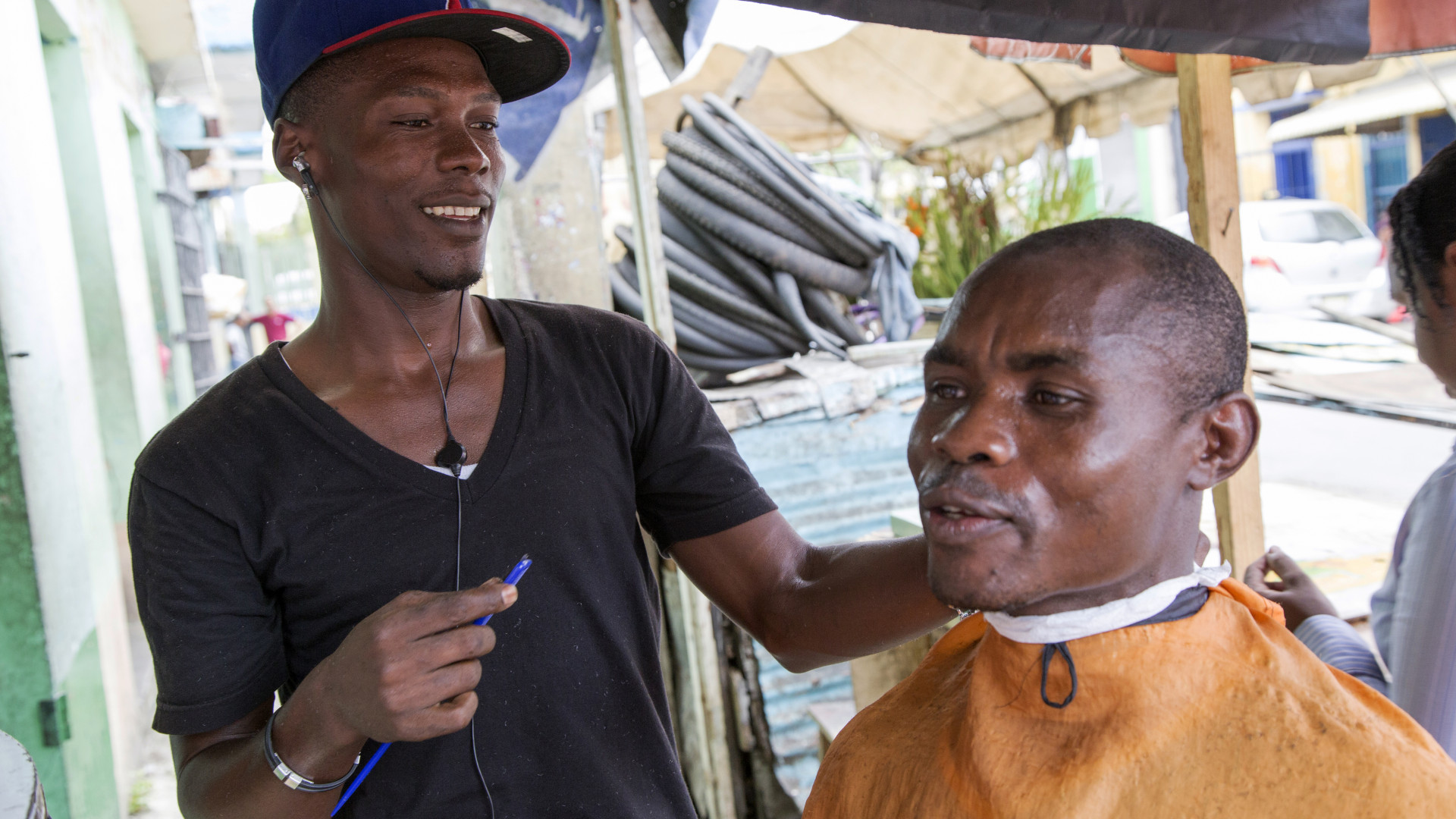 Rubén Cheri tiene su barbería. Nació en Barahona de padre haitiano y madre dominicana. Improvisa un rap:”No se dejen llevá de lo que digan de República Dominicana mi pana/ aquí tán la gente bacana…
