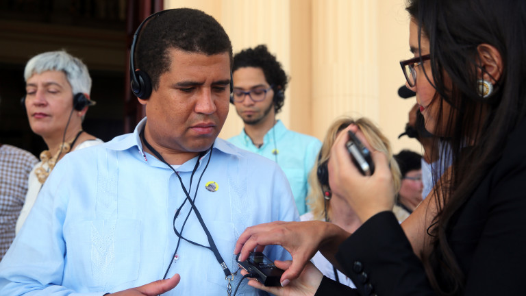 Personas con discapacidad auditiva y aquellas que no hablen español podrán disfrutar del recorrido, pues el edecán hablará a través de un micrófono que trasmitirá individualmente a un receptor que tendrá cada visitante con sus respectivos audífonos. Foto: Francis Arias /Presidencia República Dominicana Nota de prensa: presidencia.gob.do/noticias/gobierno-utiliza-sistema-audi...