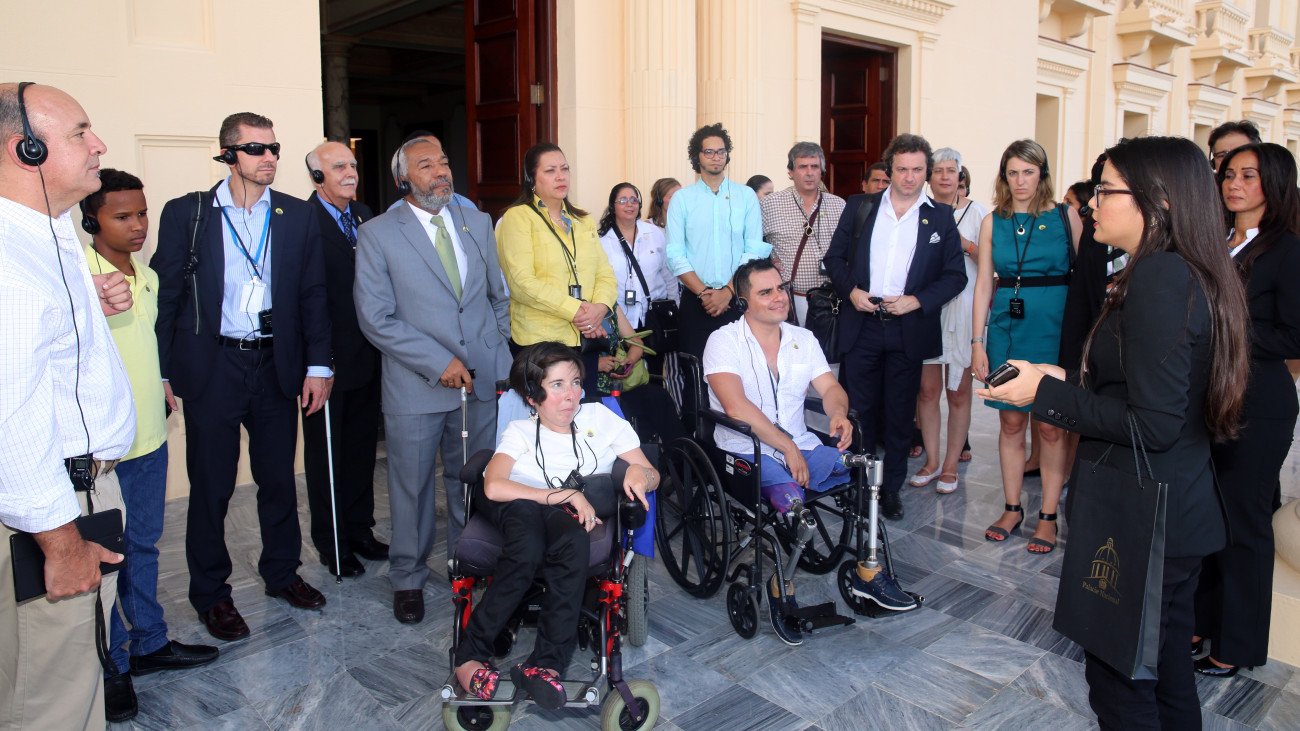 Para hacer efectivas las políticas inclusivas que impulsa el Gobierno, en adición, se presentaron equipos especiales con traducción al lenguaje de señas de manera visual a través de un dispositivo con pantalla para personas con discapacidad auditiva.
