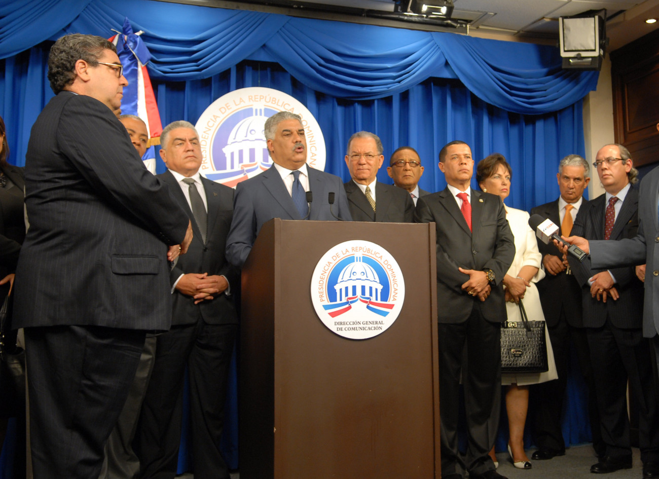 Vargas Maldonado, presidente del PRD, responde a los periodistas durante una rueda de prensa, en el salón Orlando Martínez del Palacio Nacional, luego de reunirse con el presidente de la República Danilo Medina.