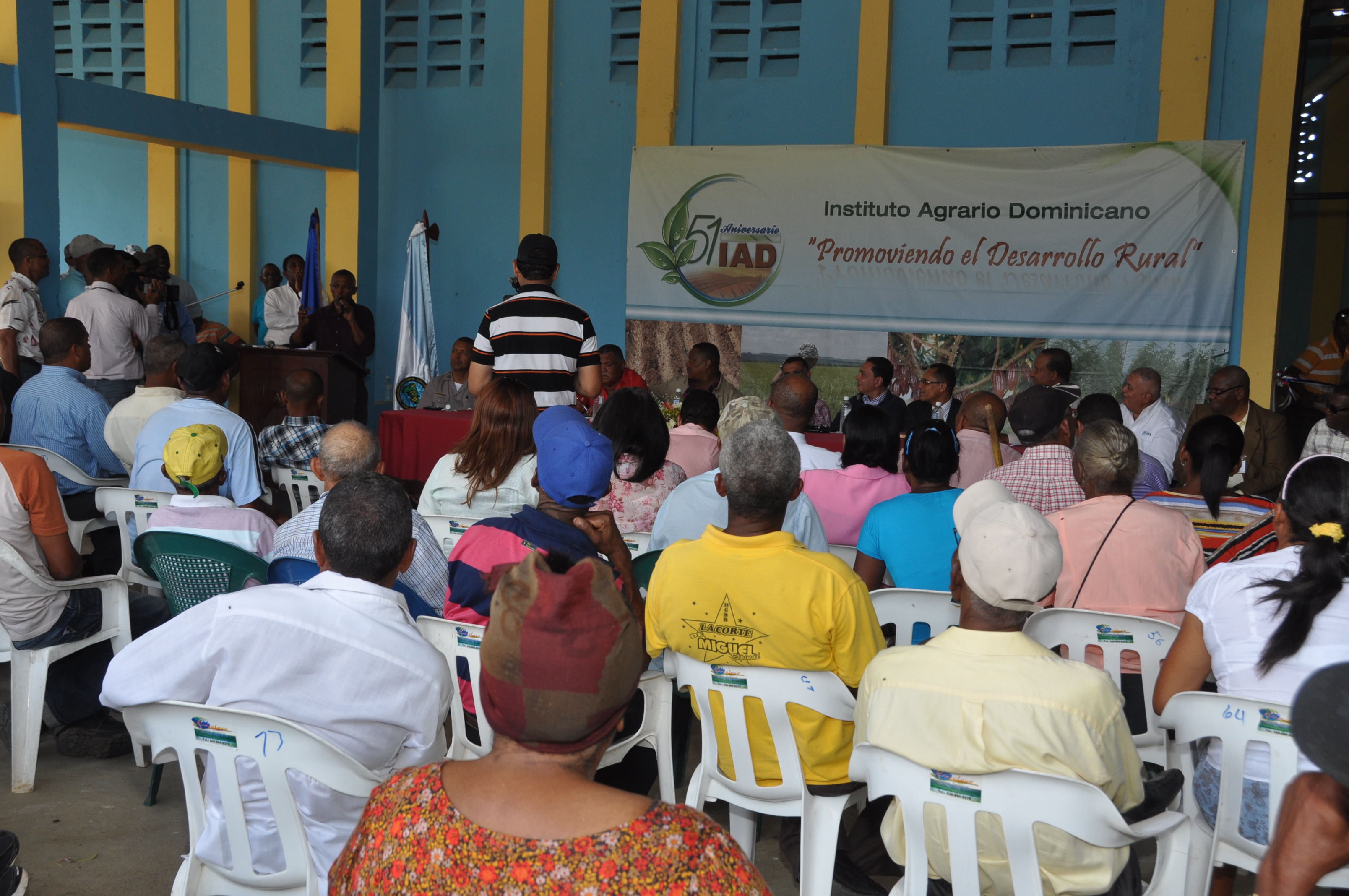 El director del Instituto Agrario Dominicano (IAD), Radhamés Valenzuela, se dirige a los parceleros presentes, antes de cortar la cinta para dejar inaugurada una factoría, la cual entregará a la Federación de Arroceros del Este, en la comunidad La Gina, del municipio Miches, provincia El Seibo.