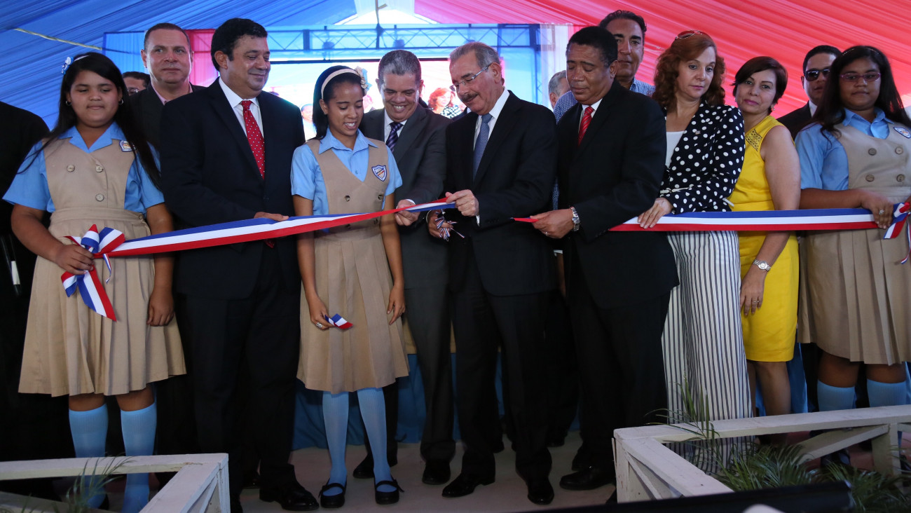 El presidente Danilo Medina entregó, desde la escuela Monseñor Rafael Mauricio Vargas, en el sector de Don Fausto, otros cuatro planteles educativos, aportando 82 aulas a la Jornada Escolar Extendida de esta provincia.