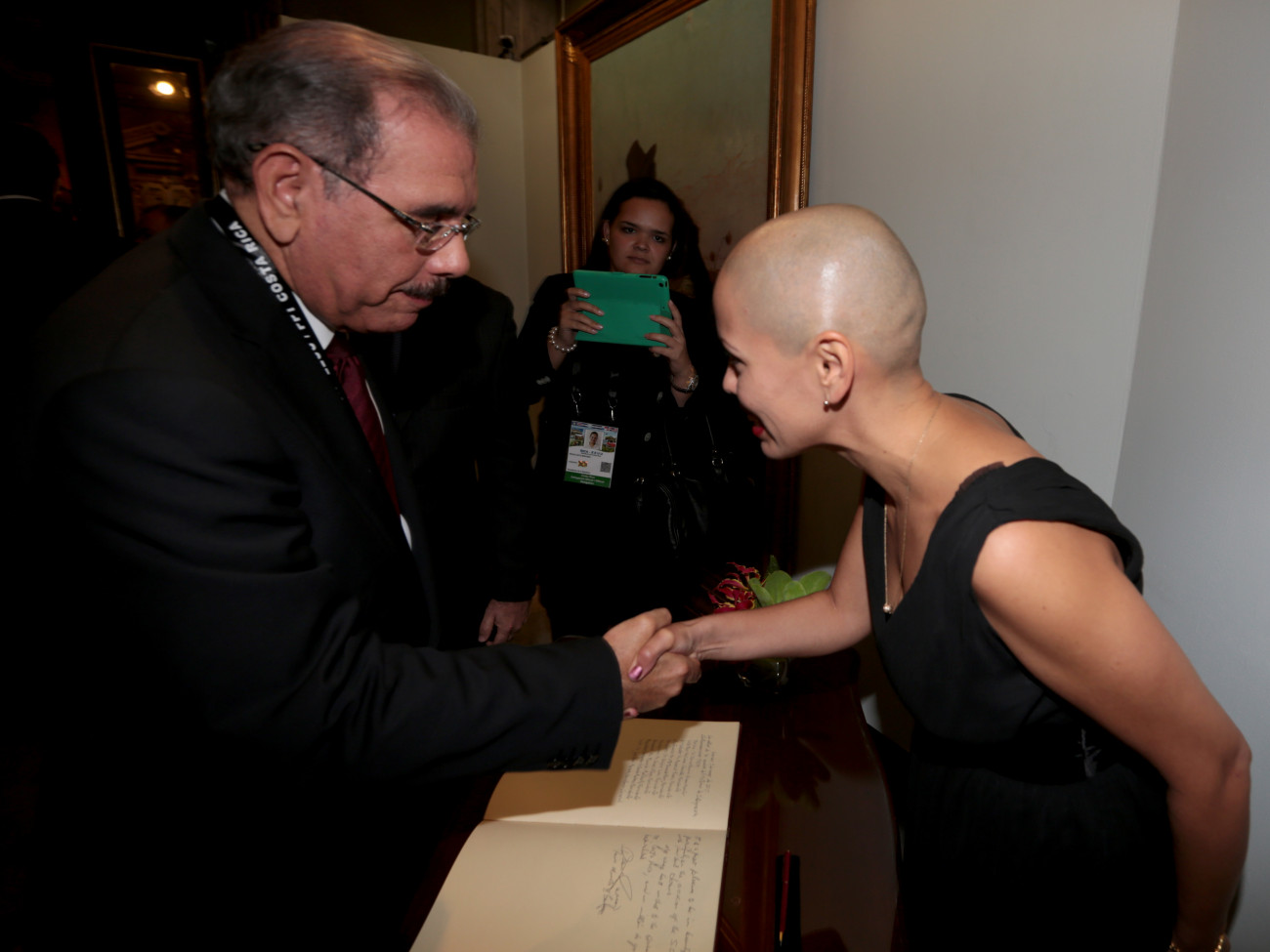 El presidente de la República, Danilo Medina, saluda a la directora del Teatro Nacional de Costa Rica, Adriana Collado, al llegar a ese lugar para una sesión de trabajo, de la cumbre del Sistema de la Integración Centroamericana y de Estados Unidos (SICA-EEUU), que se efectúa en San José, capital costarricense. presidencia.gob.do/comunicados/pocas-horas-y-mucho-trabajo