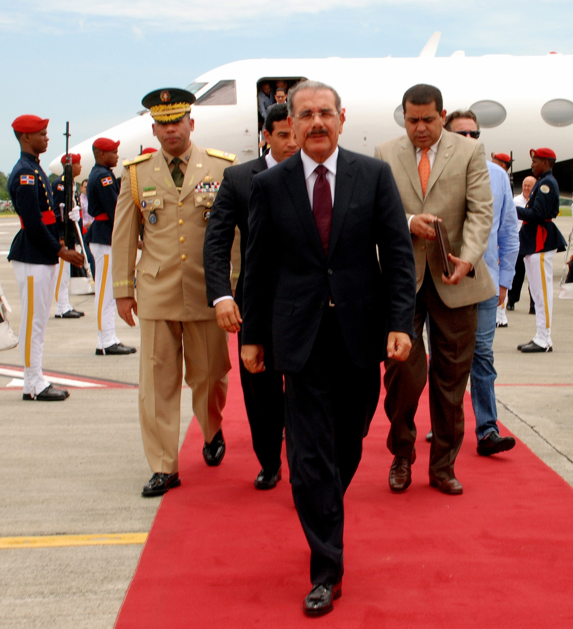 El presidente de la República, Danilo Medina, camina hacia la terminal aérea Joaquín Balaguer, luego de abandonar el avión en el cual regresó desde San José, Costa Rica, donde participó en la Reunión del Sistema de la Integración Centroamericana (SICA). presidencia.gob.do/comunicados/al-llegar-desde-costa-rica...