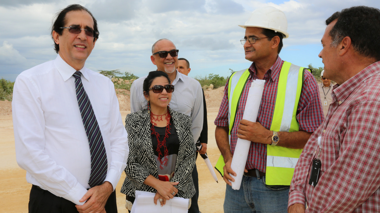 Ministro de la Presidencia, Gustavo Montalvo, junto a Lena Ciccone, e ingenieros de la obra, durante visita a los terrenos donde se erige la primera etapa del megaproyecto urbano, Ciudad Juan Bosch.