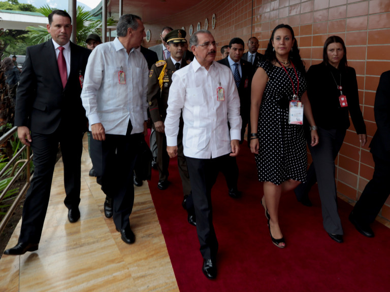 El presidente de la República Dominicana, Danilo Medina, llega al Fuerte Tiuna, lugar donde se celebra la VII Cumbre de Jefes de Estado y de Gobierno de Petrocaribe.