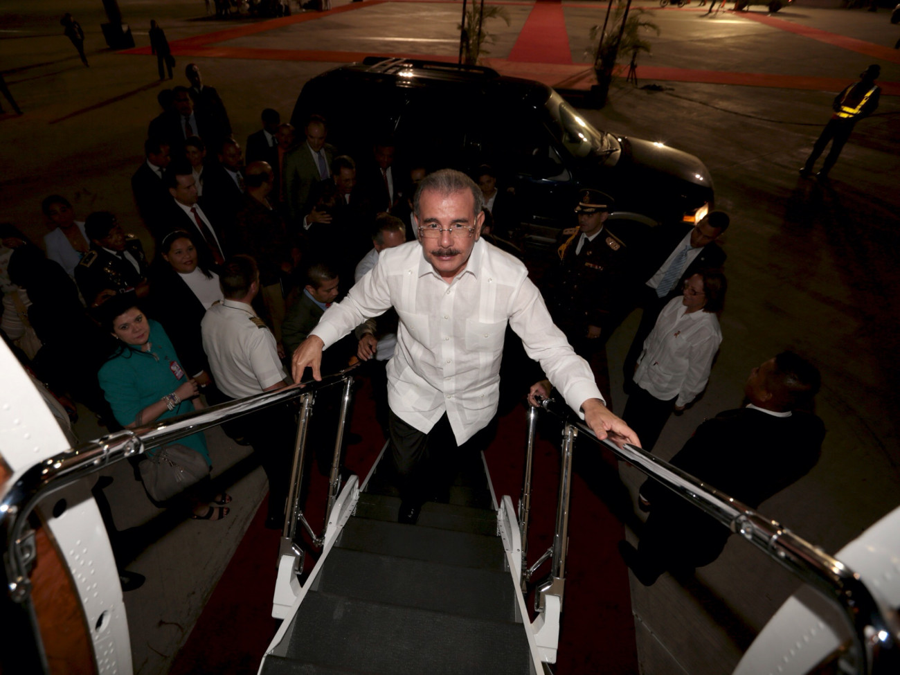 El presidente Danilo Medina aborda el avión para regresar a la República Dominicana luego de su participación en la VII Cumbre de Jefes de Estado y de Gobierno de Petrocaribe, celebrada en Venezuela.