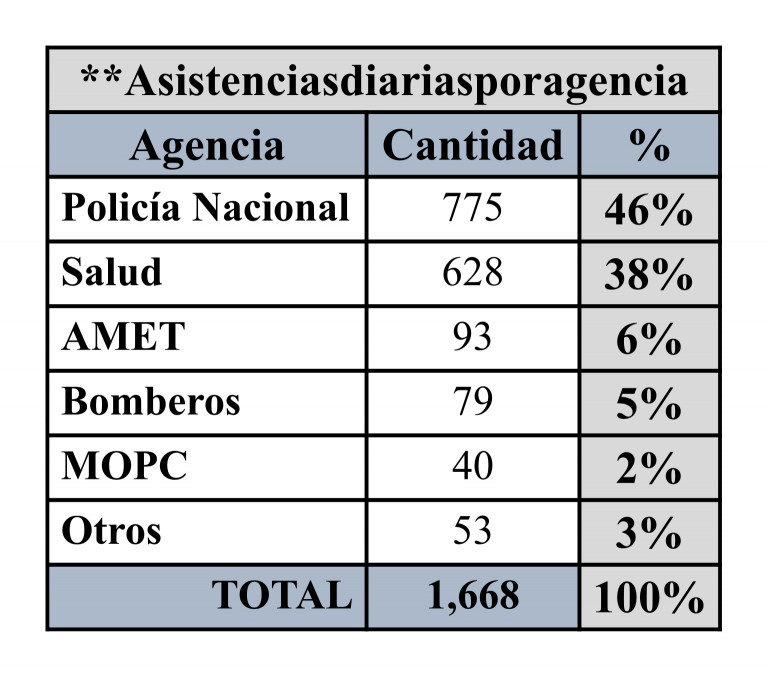 Gráficas del reporte ofrecido por el Ministerio de la Presidencia, sobre asistencias dadas a la ciudadanía por el Sistema Nacional de Atención a Emergencias y Seguridad 911, correspondiente al día 11 de agosto de 2015.