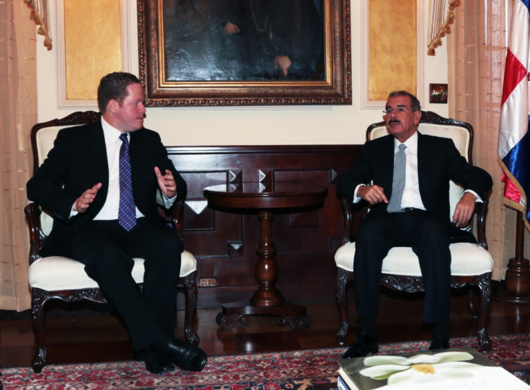 El presidente Danilo Medina conversa con el secretario de Estado de Puerto Rico, David Bernier Rivera, y ponderaron los resultados de las conversaciones entre ambos países.