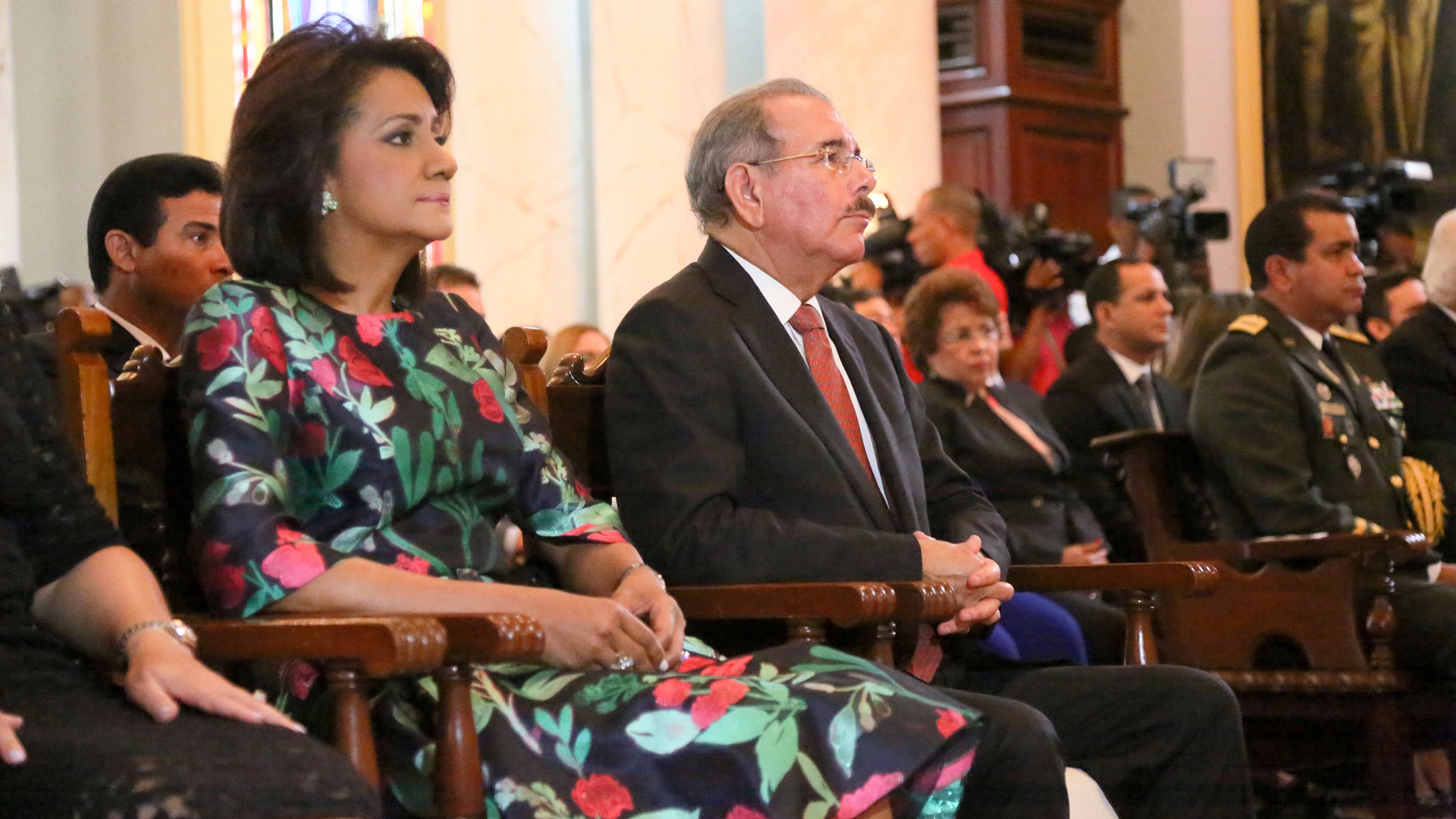 El presidente Danilo Medina, junto a la primera dama Cándida Montilla de Medina y la vicepresidenta Margarita Cedeño de Fernández, encabezó una eucaristía en ocasión de cumplirse tres años de grandes realizaciones del Gobierno.