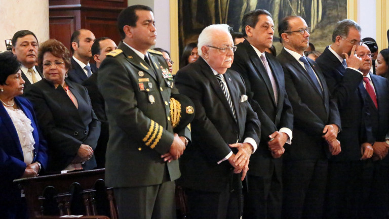 El oficio religioso se efectuó en la capilla del Palacio Nacional, con la asistencia de ministros, administradores y directores departamentales. La pareja presidencial también estuvo acompañada de su hija Vanessa.
