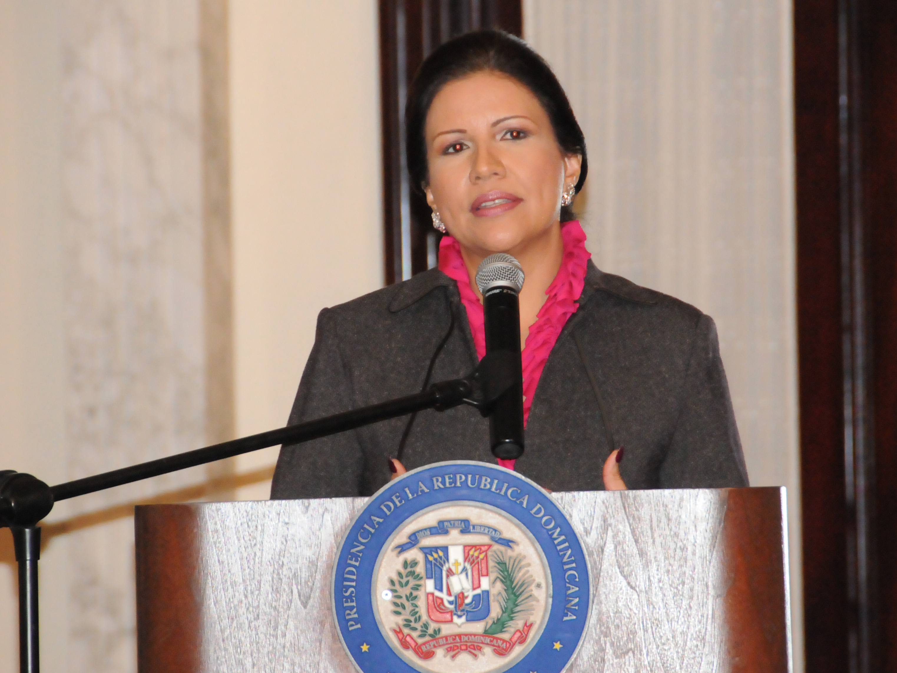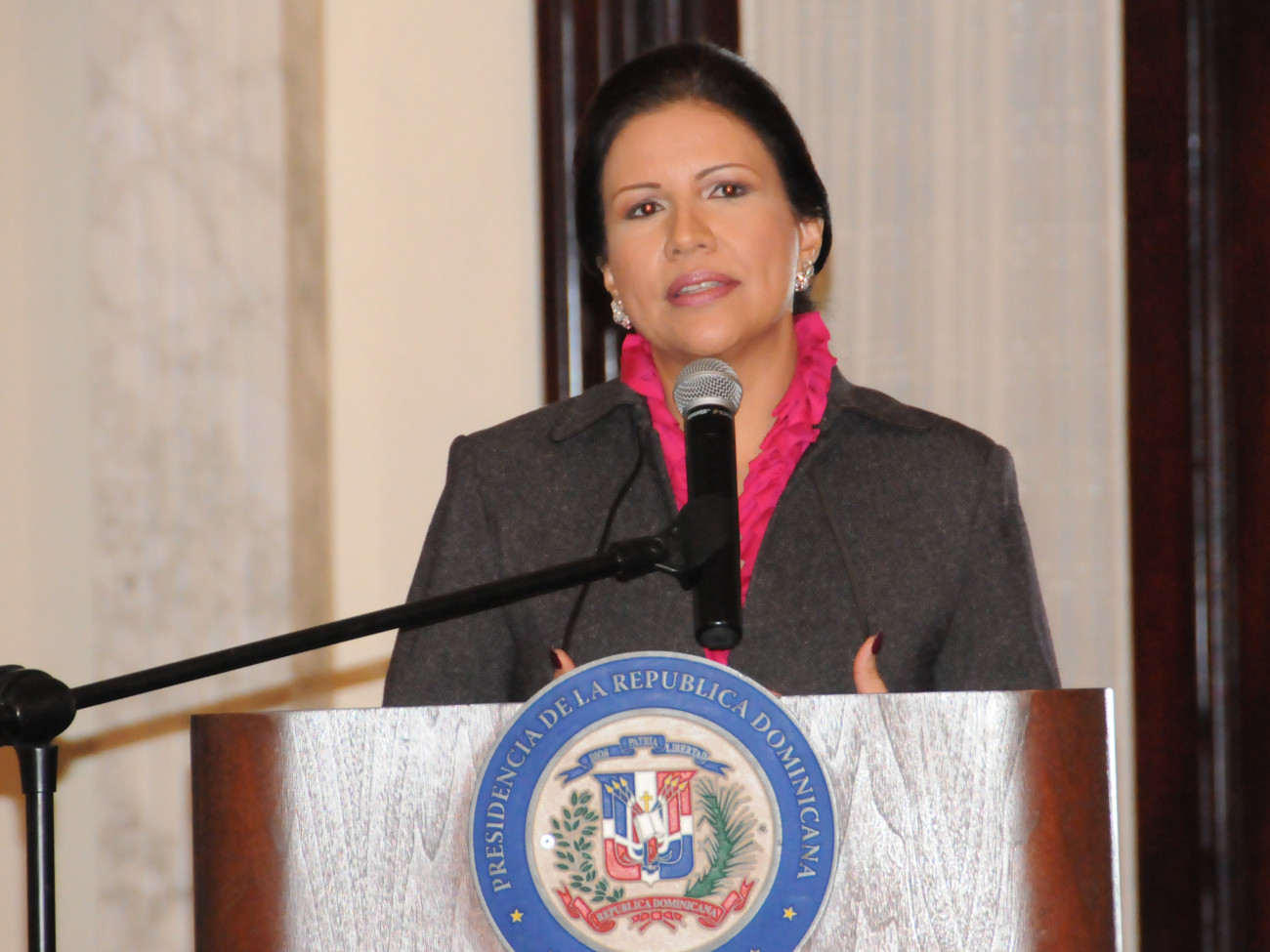 La vicepresidenta de la República, Margarita Cedeño de Fernández, se dirige a los presentes en el acto que encabeza, en el salón de Embajadores del Palacio Nacional, por motivo del Día Nacional de la Seguridad Social.