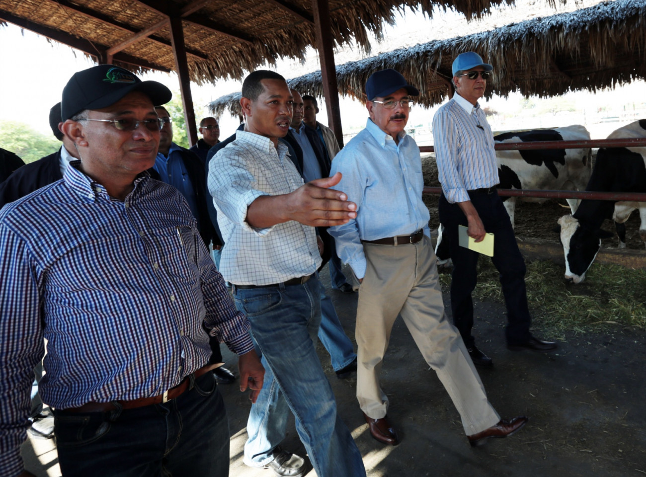 El presidente de la República, Danilo Medina, recorre las instalaciones del proyecto ganadero D-1 de Ysura, provincia Azua, donde funciona una planta pasteurizadora. El jefe de Estado recibe explicaciones sobre su funcionamiento, operación y producción.